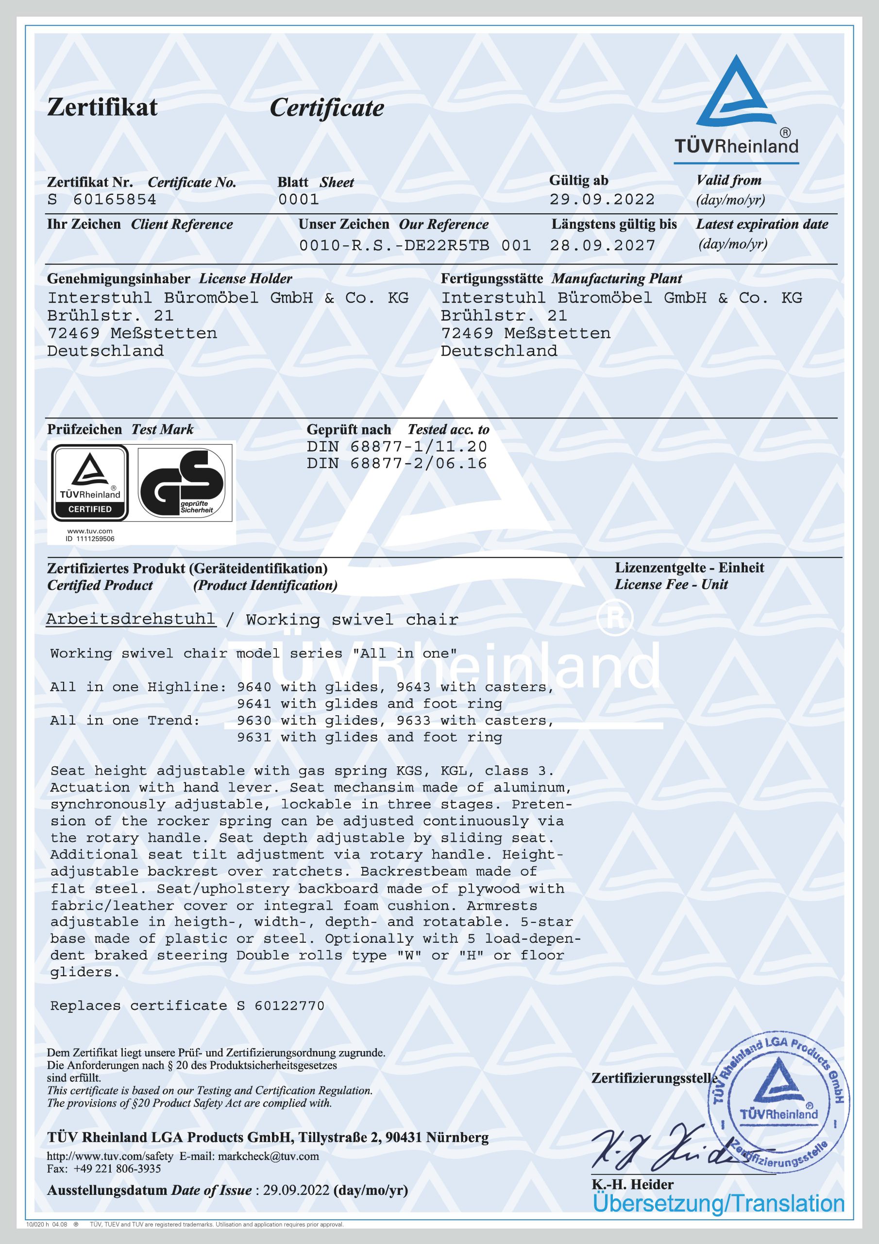 Bureaustoel – specificaties